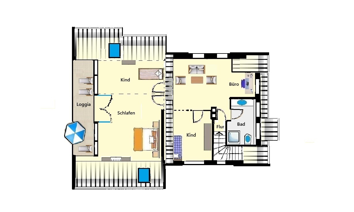 – Obergeschoss mit Außenloggia