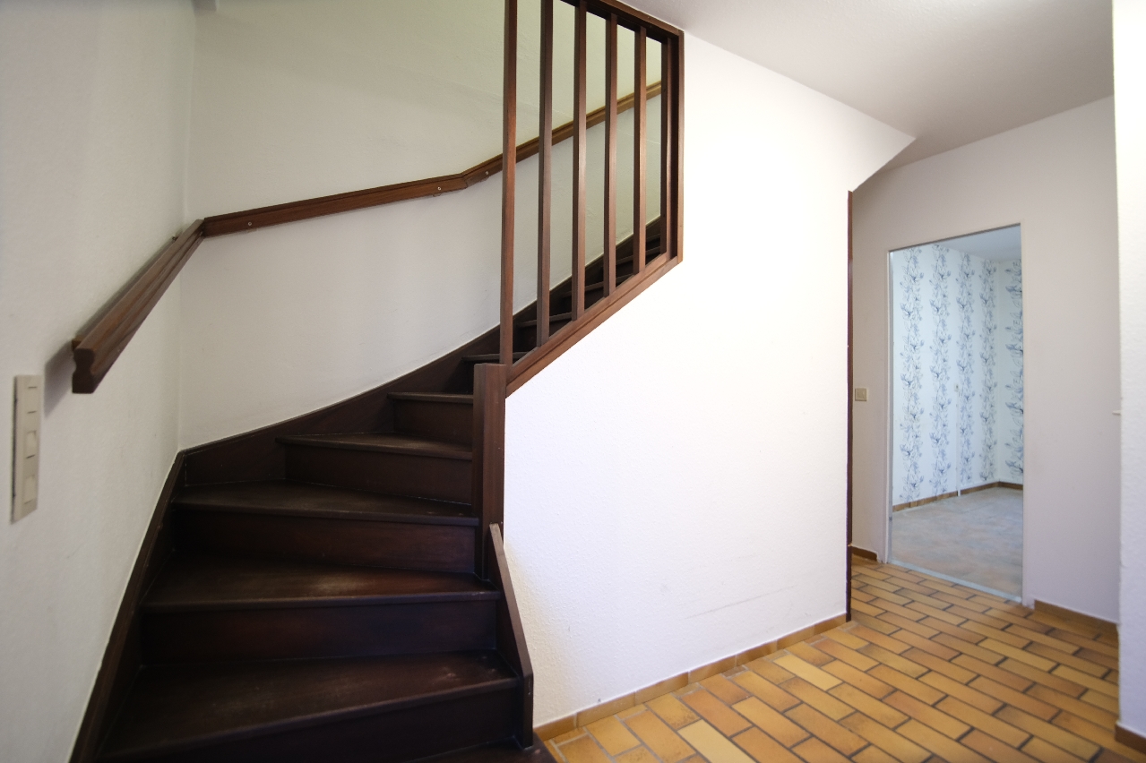 Die Treppe im Eingangsbereich verbindet das Erdgeschoss mit dem Obergeschoss. Im Obergeschoss erwartet Sie ein modernisiertes Badezimmer (2016) mit einem großen Fenster, einer begehbaren Dusche, einem Handwaschbecken mit Spiegelschrank und einem WC. Zwei weitere Wohnräume können auf dieser Etage jeweils als Eltern- und Kinderzimmer genutzt werden. Das dritte Zimmer bietet aufgrund der Fläche ideale Voraussetzungen für einen Büroraum.