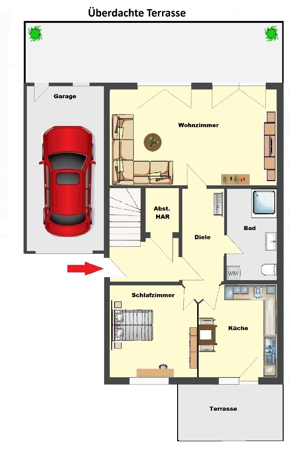 Zu dieser Wohnung gehört die Garage mit dem Zugang zum eigenen Garten.